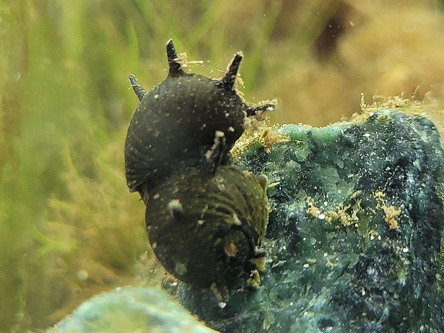 In aquariums, Horned Nerite Snails are highly efficient algae grazers, diligently scouring surfaces for various types of algae, including green algae, diatoms, and soft algae films. They are particularly effective in planted tanks, where they help to keep leaves, glass, and decorations clean and free from algae overgrowth. However, they may not consume certain types of tougher algae, such as hair algae or brush algae.