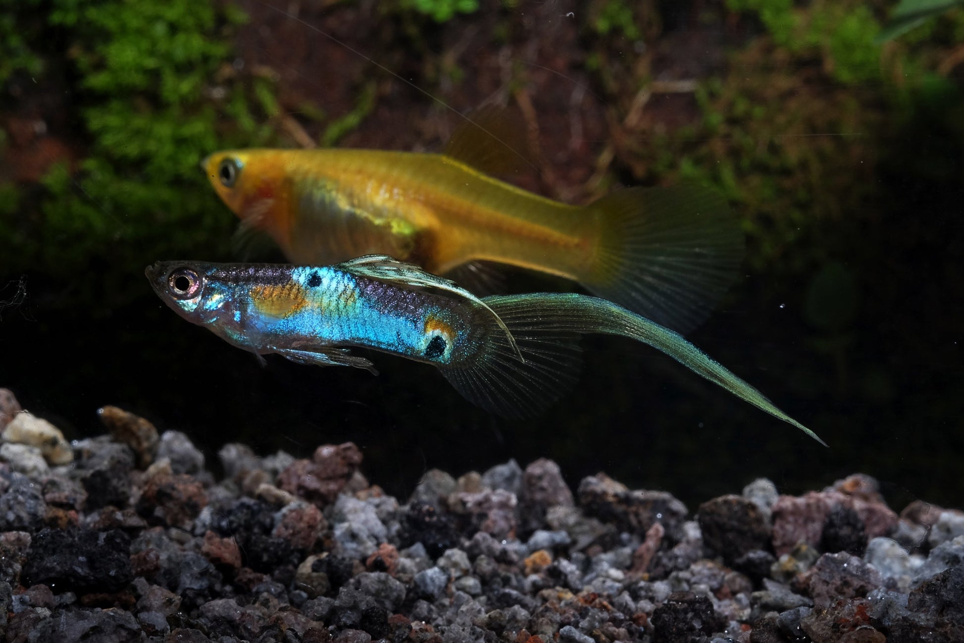 In aquariums, Guppies thrive in well-planted setups with open swimming spaces. They are social and prefer to be kept in groups, especially if you have both males and females. Guppies are compatible with various community fish, given their peaceful nature.