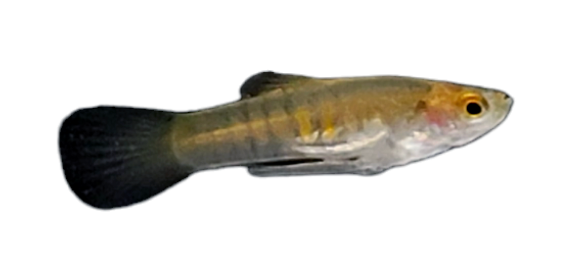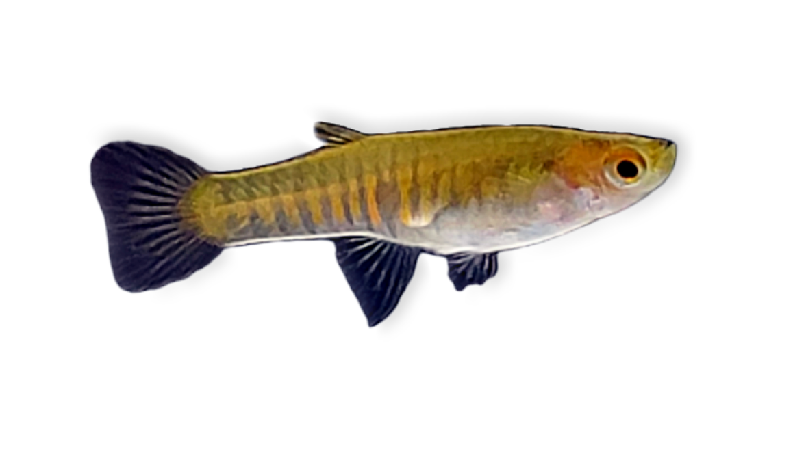The Tiger Teddy Livebearer, Neoheterandria elegans, is native to Colombia. These petite fish typically reach a size of about 0.6 to 1 inch (1.5 to 2.5 cm), making them well-suited for smaller aquariums with a recommended minimum size of 5 gallons.
