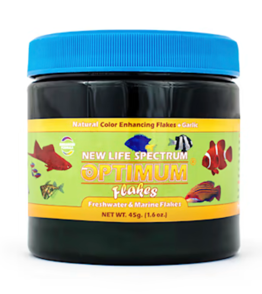 New Life Spectrum® Optimum Flakes use the Spectrum Nutrition Formula. They are suitable for smaller, surface feeding community fish. While pellets provide higher nutrient density and stability in water, this is a great solution for those fish conditioned to flakes or as a transition from flake foods to New Life Spectrum pellets.