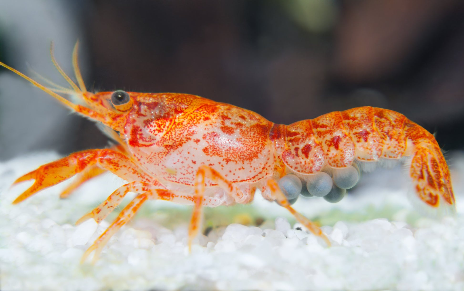 Breeding Orange Mexican Dwarf Crayfish in captivity is possible under the right conditions and setup. Males and females can be distinguished by examining their reproductive appendages, with males typically having more elongated and pointed gonopods. Providing a suitable breeding environment with ample hiding spots and vegetation encourages mating behavior. Once eggs are laid and fertilized, the female carries them beneath her abdomen until they hatch, and the tiny fry can be raised on a diet of specialized fry foods or powdered algae.