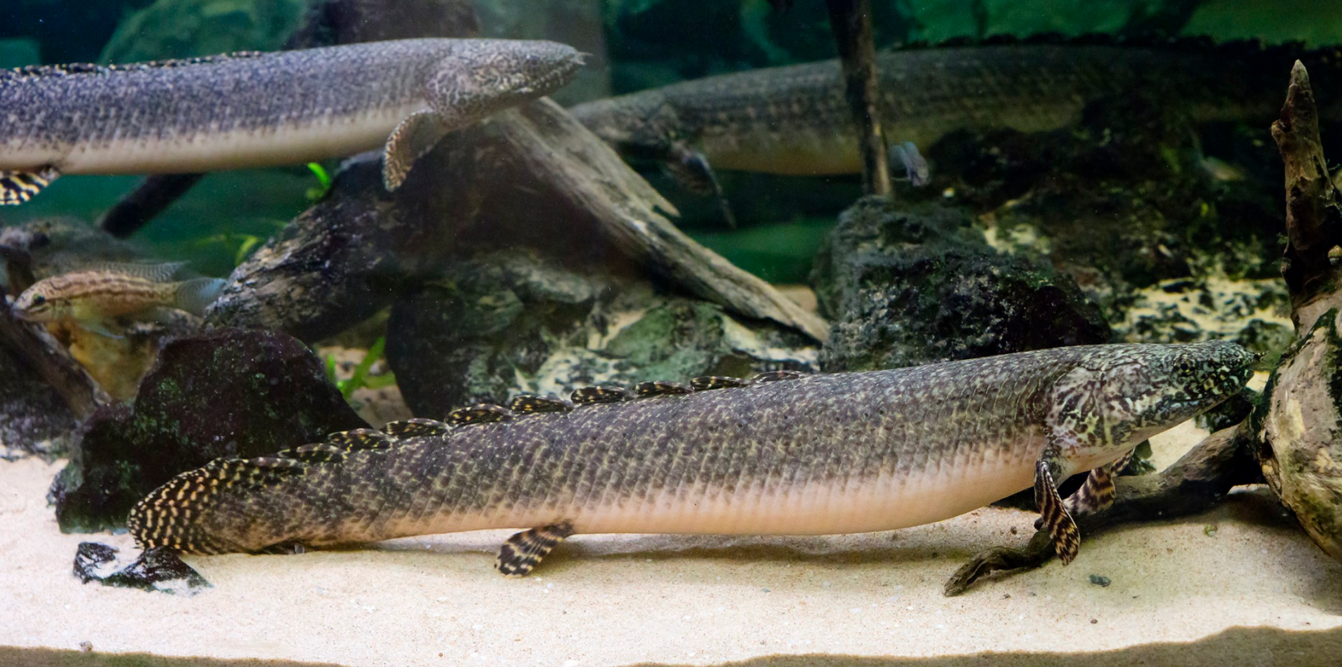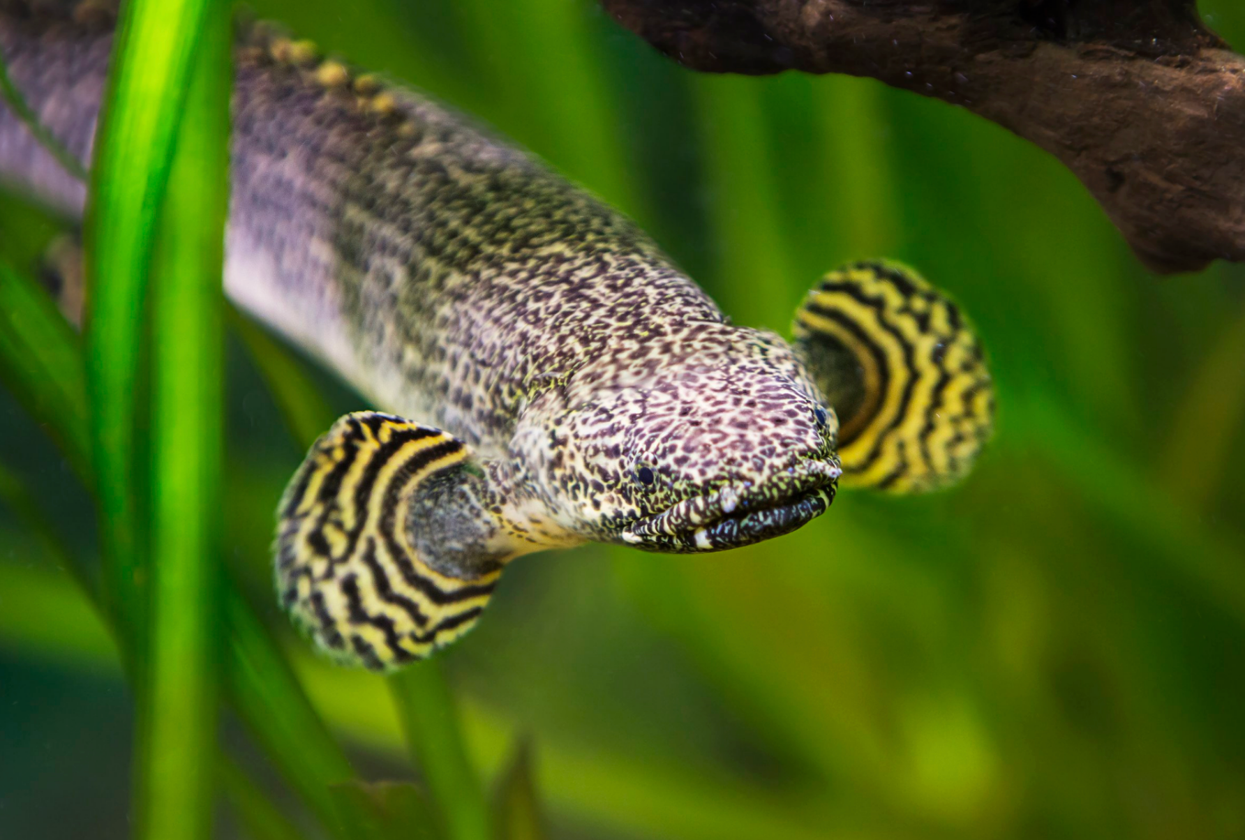 In the aquarium, Ornate Bichirs require a large, well-secured tank of at least 100 gallons due to their size and semi-predatory nature. They thrive in low-light setups with plenty of hiding spots, such as large driftwood, caves, and rock structures. A fine sand or soft gravel substrate is recommended to prevent injury as they often rest on the bottom. Since they are nocturnal and prefer subdued lighting, floating plants can help create a more comfortable environment. A tightly fitting lid is essential, as bichirs are known escape artists and can survive out of water for short periods due to their ability to breathe atmospheric oxygen.