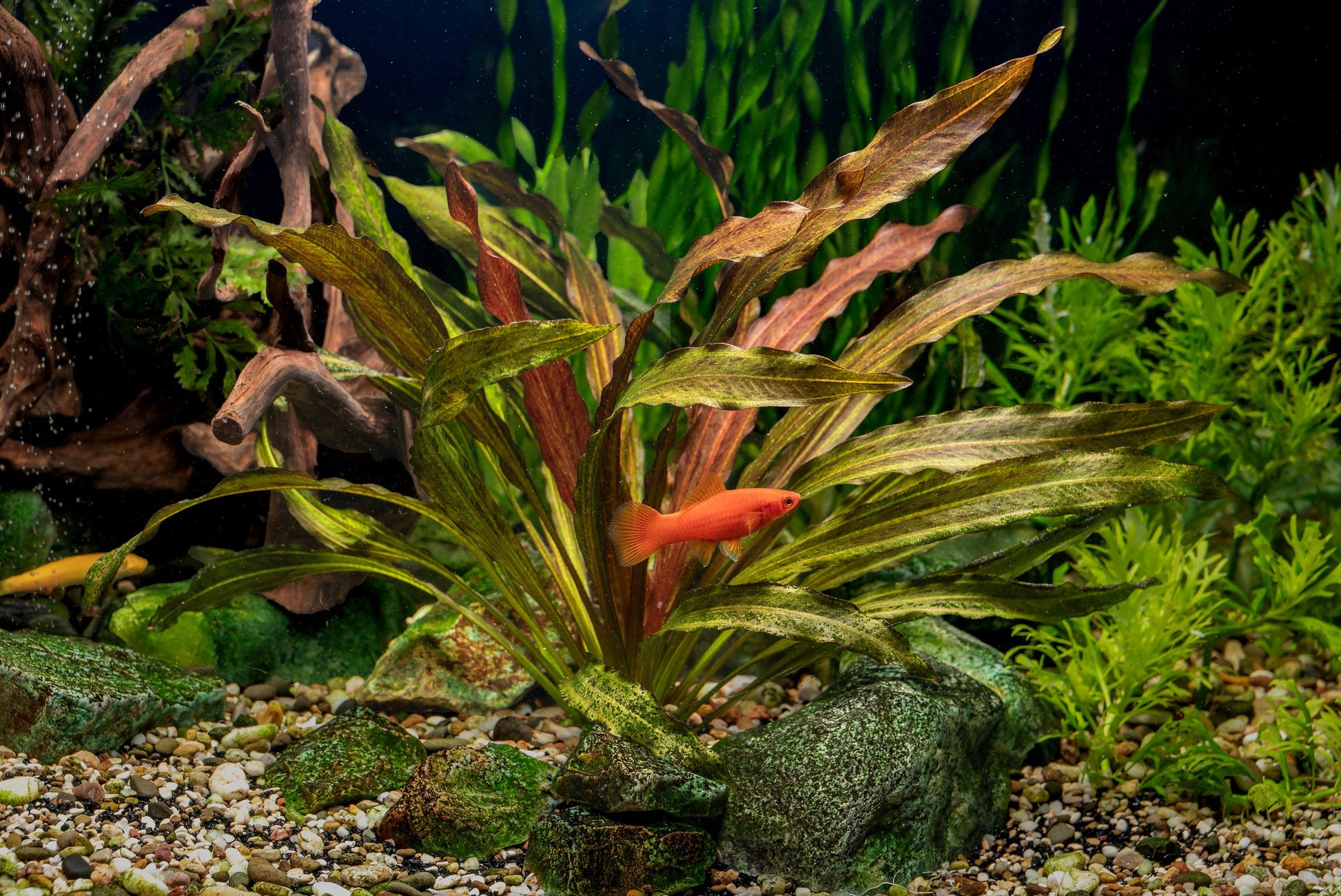 Water parameters for the Red Flame Sword should replicate the conditions of its tropical origins. It prefers slightly acidic to neutral water with a pH range of 6.5 to 7.5 and temperatures between 72 to 82°F (22 to 28°C). The plant tolerates a wide range of conditions, making it suitable for beginners and experienced aquarists alike. Regular trimming of older leaves encourages new growth and prevents the plant from overshadowing smaller tankmates or other plants.