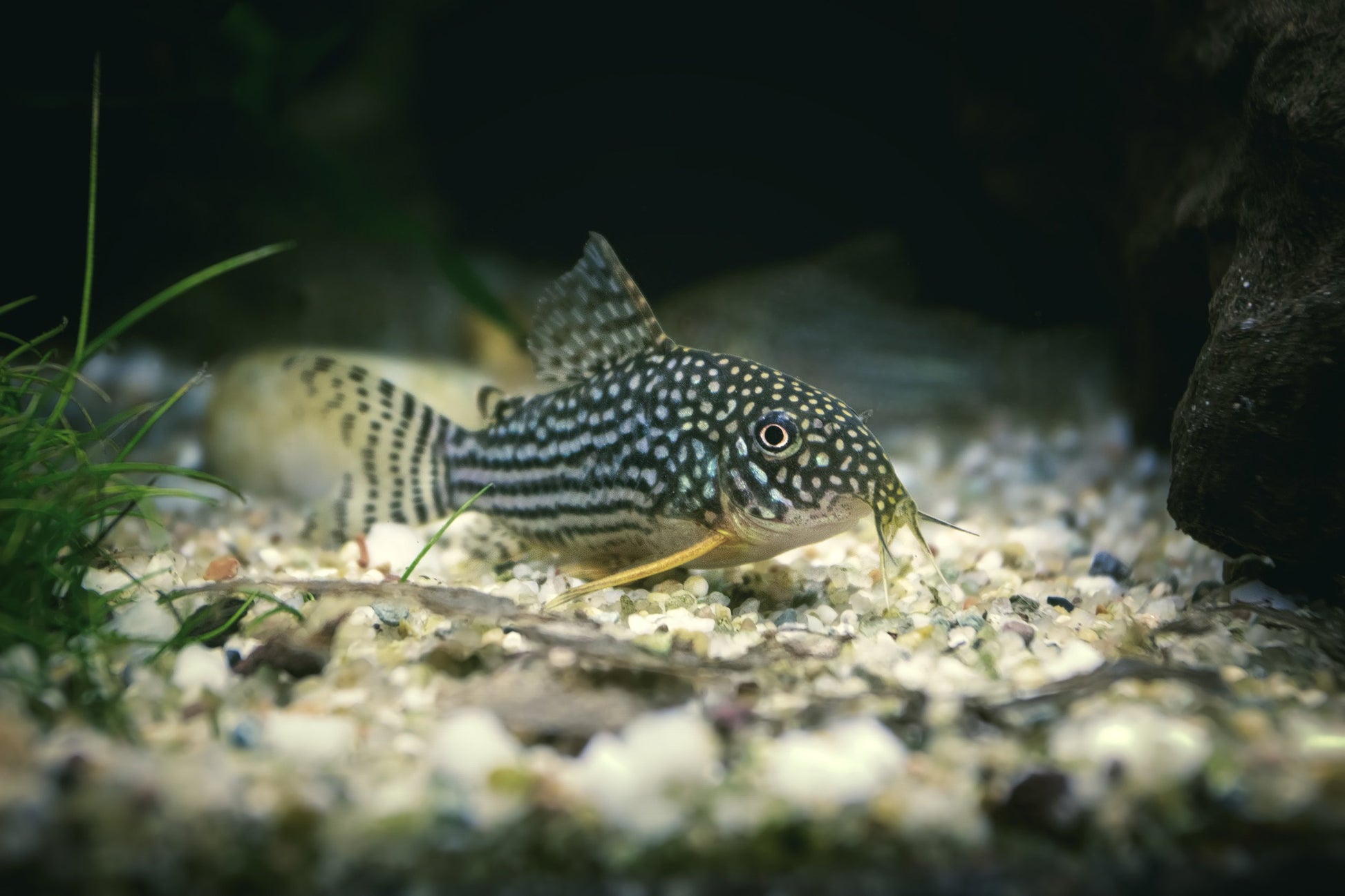 Sterbai Corydoras are social and thrive in groups, making them suitable for community aquariums. They are primarily bottom-dwellers, scavenging for food particles in the substrate. A balanced diet that includes high-quality sinking pellets, live or frozen foods, meets their nutritional requirements.